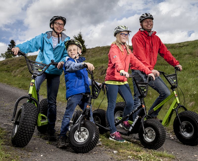 Am Fichtelberg im Erzgebirge erwarten Sie abenteuerliche Monsterroller-Erlebnisse. Die einmaligen Monster stehen im k1 sporthotel, direkt neben der Fichtelberg Schwebebahn gelegen, und warten auf kleine und große Piloten. Mit luftbereiften, grobstolligen und scheibengebremsten Rollern düsen Sie nach einer Bergfahrt mit der Schwebebahn oder dem Sessellift den Fichtelberg hinab. Das bietet Ihnen nicht nur Spaß und Nervenkitzel, sondern auch eine unvergleichliche Aussicht auf Oberwiesenthal und das schöne Erzgebirge.